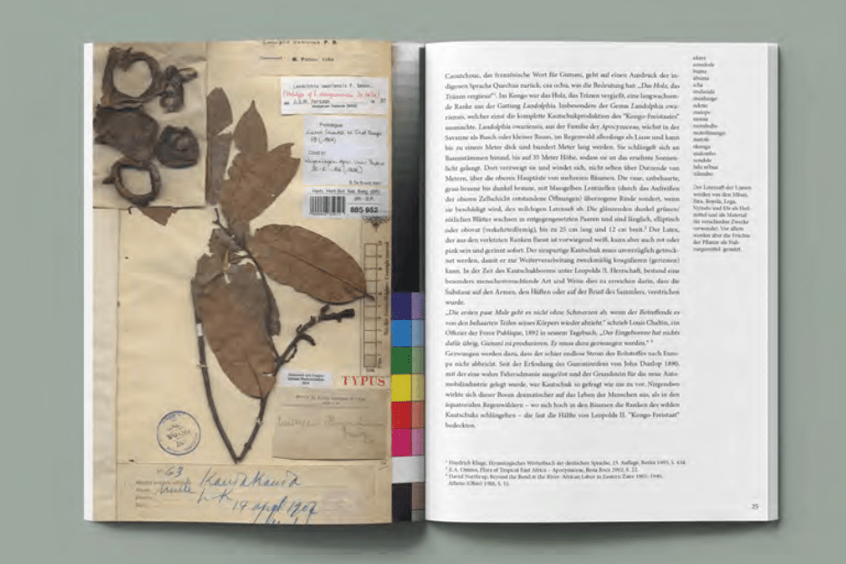 The text is written from the point of view of the rubber liana and the camellia. Images were taken from the Herbarium Meise and the archives of the Royal Palace.